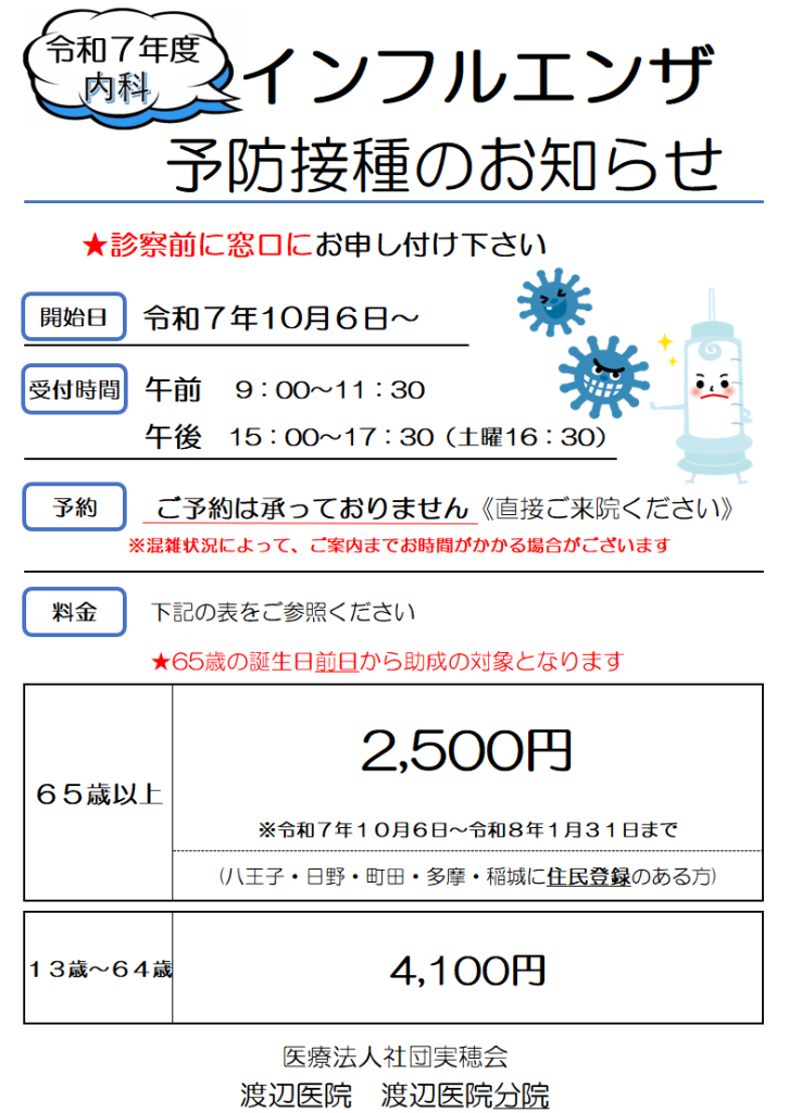 令和7年度(2025年度) 高齢者インフルエンザ予防接種について|八王子市公式ホームページ